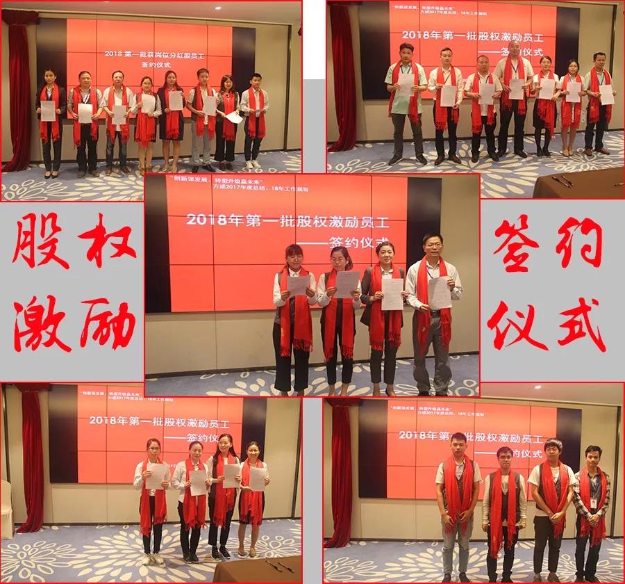 股權激勵,並成立股權委員會,實現“財散人聚”的發展模式。會議中,共計29名員工與公司簽約分別獲