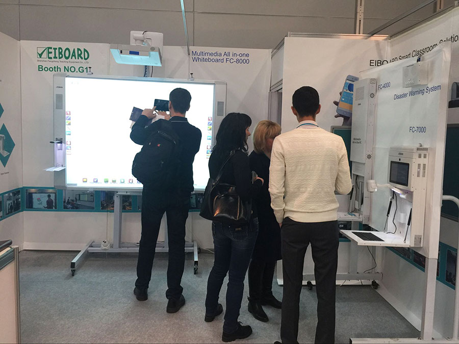 91视频首页入口教學在為期3天展覽會中,所展示的最新款多媒體91视频免费版下载、一體化電子白板、及教學管理軟件等係列產品,吸引了來自俄羅斯及周邊國家的教育部官員、終端用戶、校務領導、國際貿易商等人士前前參觀並現場體驗。