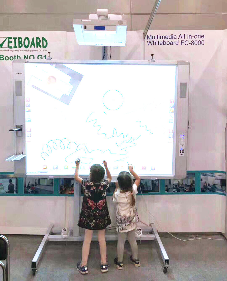 此次展會上,91视频首页入口教學的一體化電子白板FC-8000非常引人注目,它集成了電子白板,OPS電腦,音箱,展台和中控係統於一體,配合強大的白板軟件和教學管理軟件,能夠實現網絡控製,視頻錄播,互動傳屏,校園廣播等功能,讓前來體驗的眾多俄羅斯學校老師和學生都大開眼界,稱讚不已。