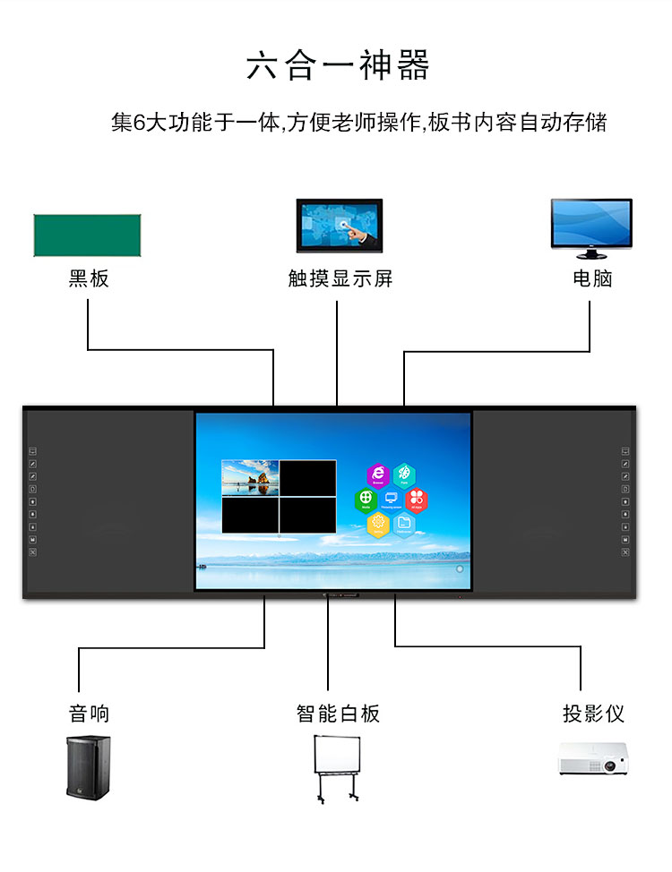 記憶91视频黄色版-集電腦、音箱、展台、智能中控、白板於一體,采用一體化無縫拚接設計美觀大氣,電控展台方便收納,紅外二十點觸控滿足多人同時書寫,板麵采用冷軋麵板防撞防刮,尺寸擴展性強,滿足不同教學場景需求。
